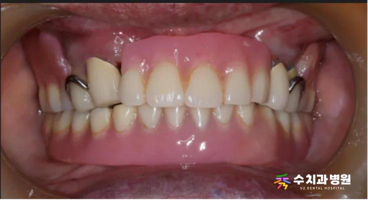 주호소 (C.C): 기존 부분틀니 지지대 치아가 약해져 전체 틀니를 원함