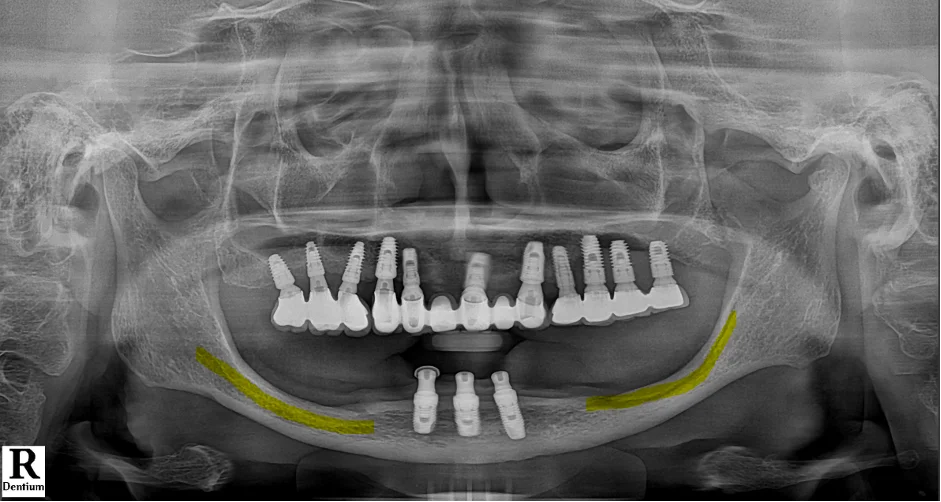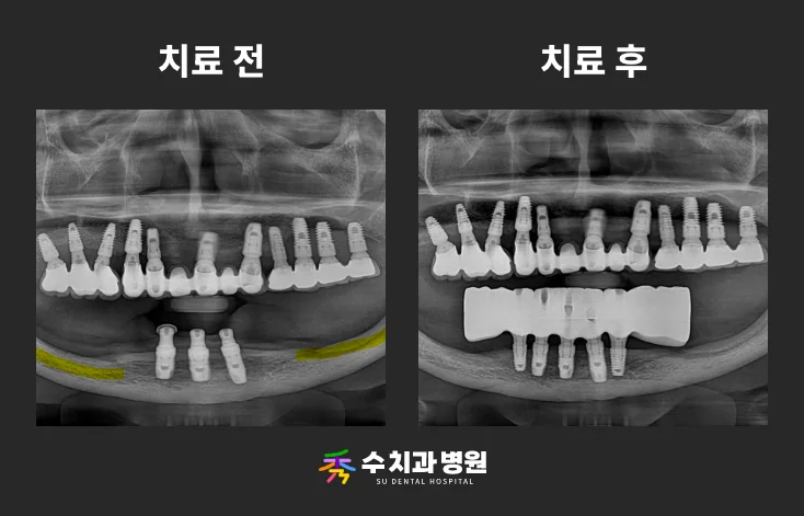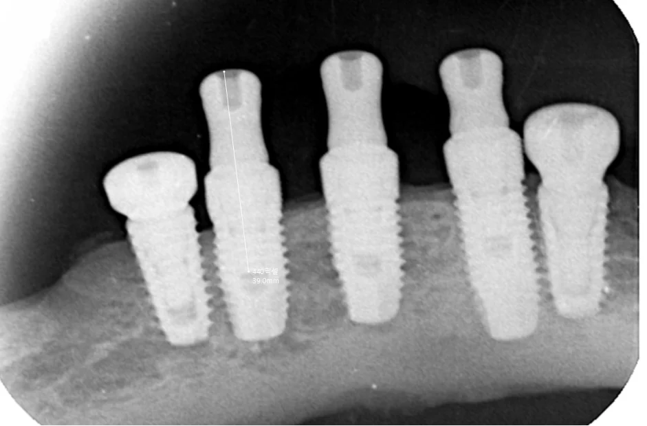 아래턱 앞쪽의 기존 임플란트 3개는 그대로 유지하면서