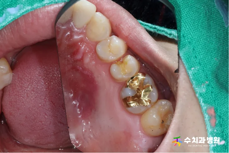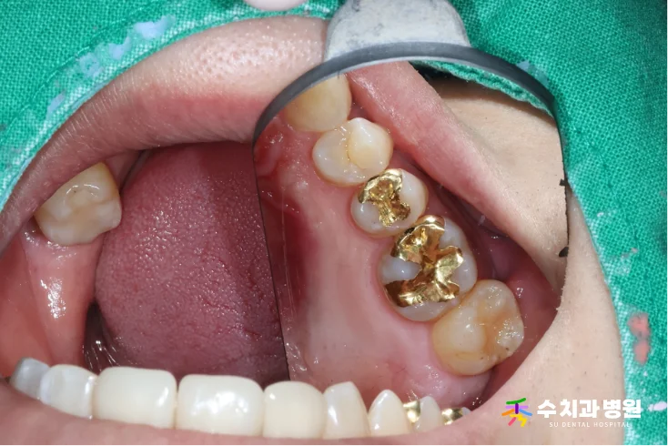 그 자리에 딱 맞는 골드 인레이가 채워졌습니다.